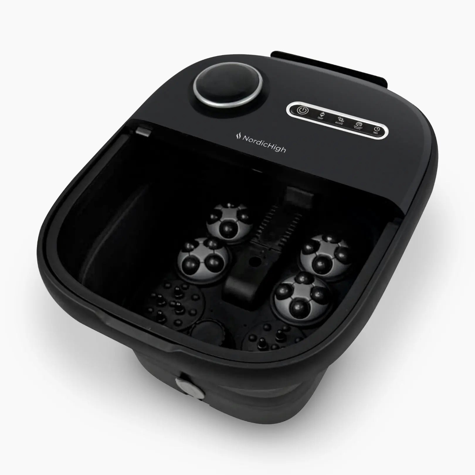 Fotbad Pro forvandler badet ditt til et profesjonelt Fotbad. Med justerbar temperatur (35–48°C), motoriserte massasje-kuler og beroligende luftbobler, stimuleres blodomløpet og spenninger forsvinner. Du velger selv varighet og intensitet – opptil 60 minutter ren egenpleie.