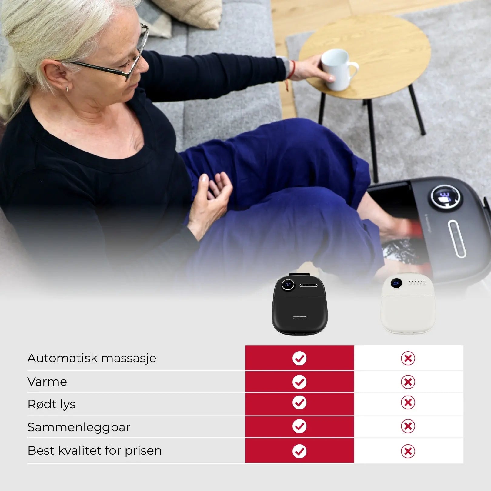 Gi føttene dine en velfortjent pause med Fotbad Pro – din personlige wellness-oase. Med infrarød varme, dyptgående shiatsumassasje og milde bobler får du umiddelbar lindring og ny energi, direkte hjemmefra. Perfekt etter en lang dag, trening eller bare for å unne deg selv.