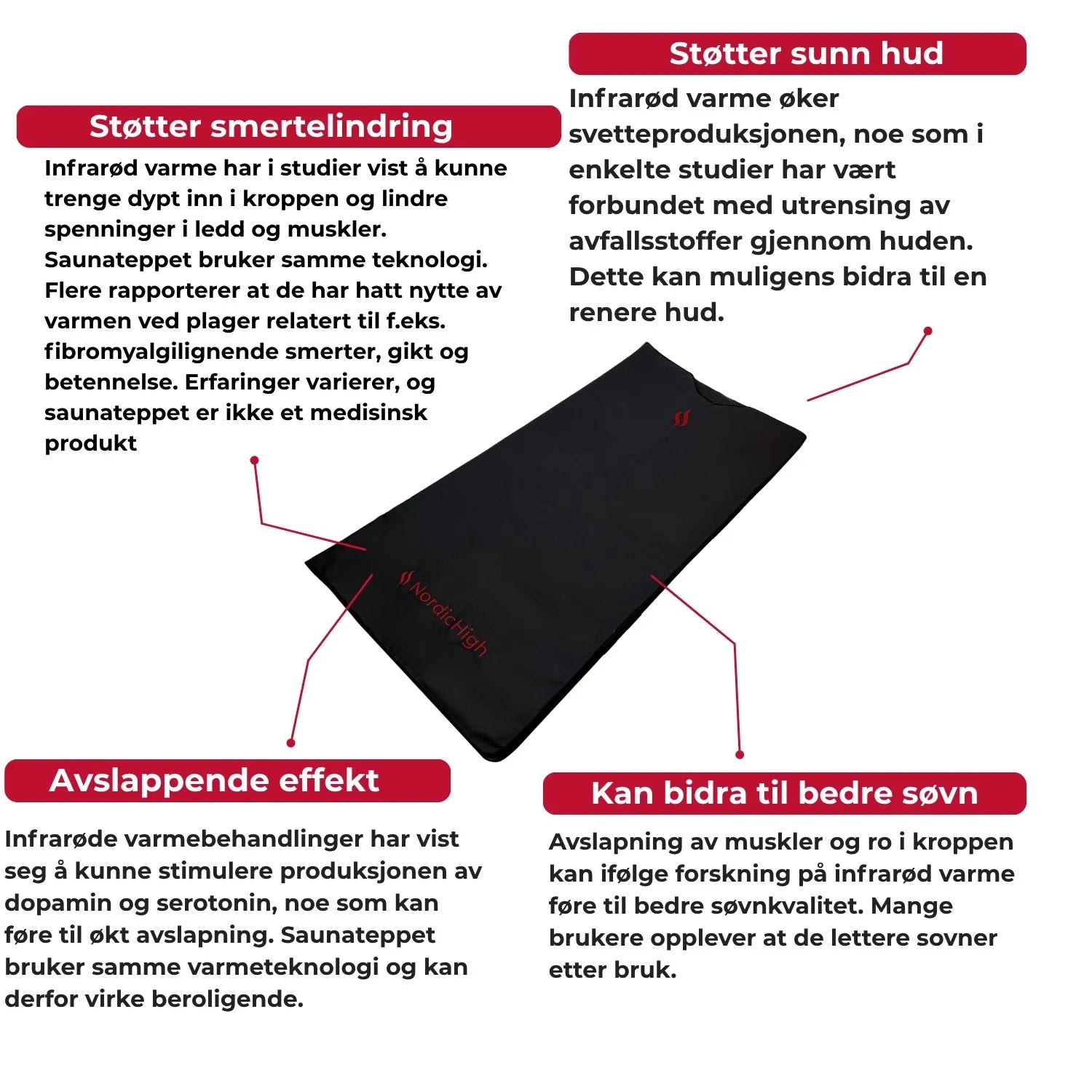 I tillegg byr et infrarødt saunateppe på en rekke helsemessige fordeler – både fysisk og mentalt: