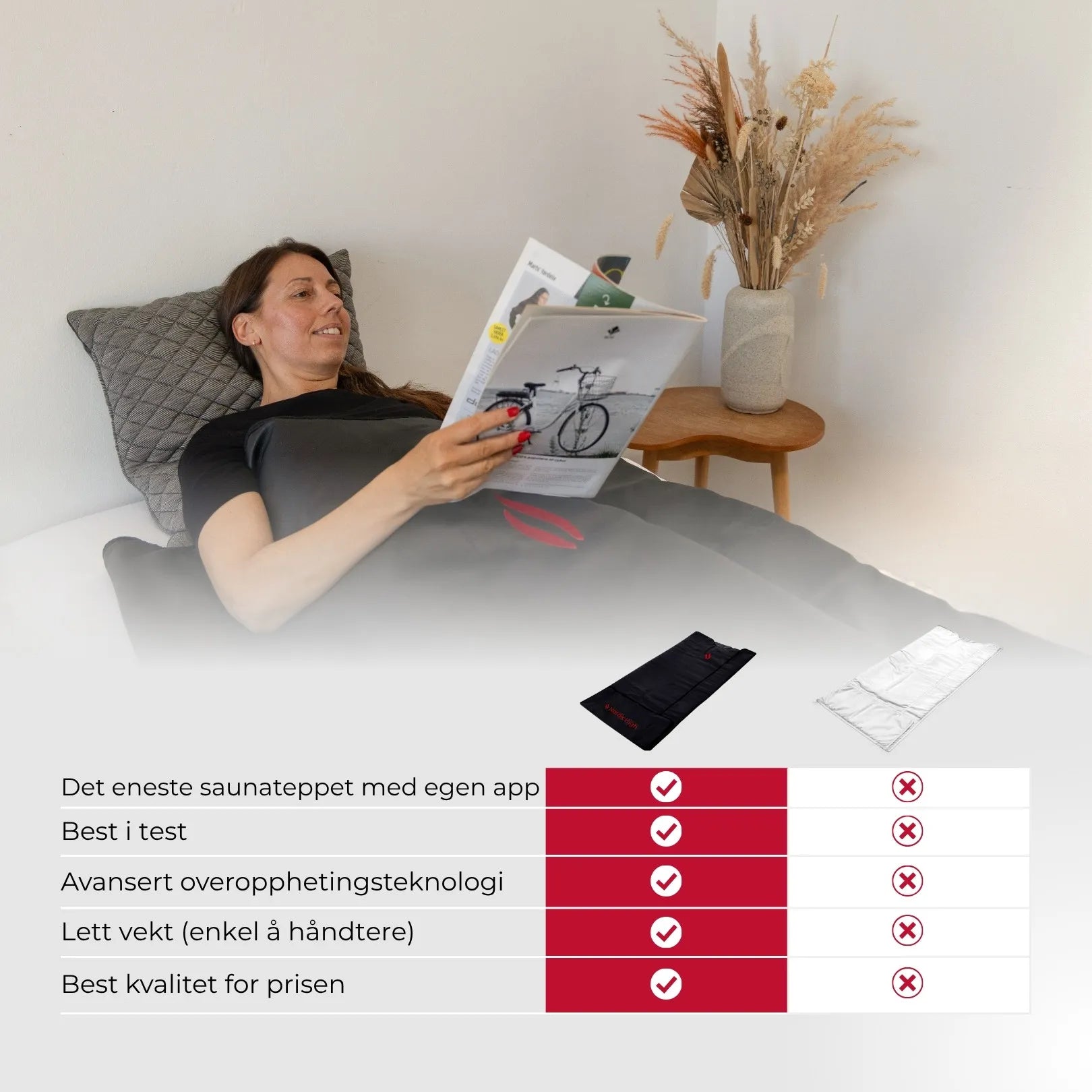 Nyt behandlingen i 30–60 minutter. Opplev de mange fordelene med et infrarødt saunateppe – og kjenn forskjellen.